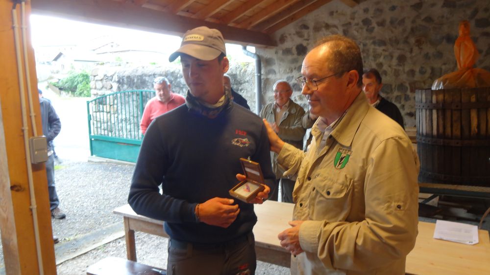 - La Mouche d’Or, offerte par le CPSFV, a été remise à Clément PERRIN pour la capture d’une très belle truite de 30 cm;