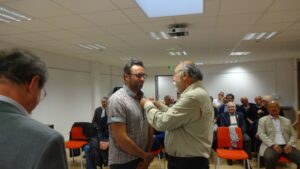 Il reçoit alors l’écusson officiel et un insigne personnel numéroté lors de la séance annuelle de prestation de serment où, en présence des membres du C.F.P.M. et de son parrain de Club, il s’engage à respecter le code d’honneur du C.F.P.M.