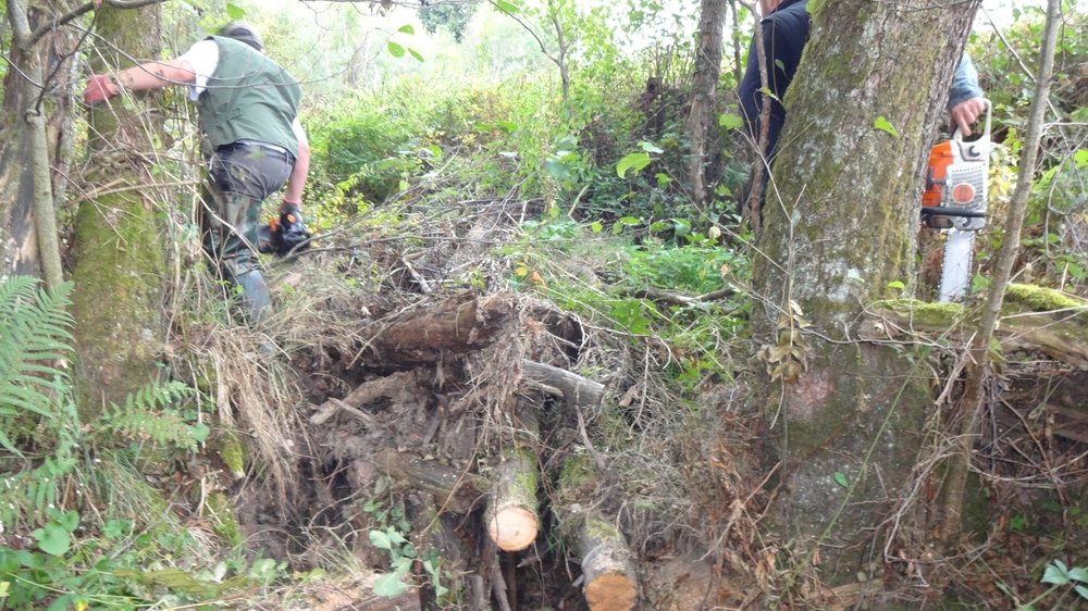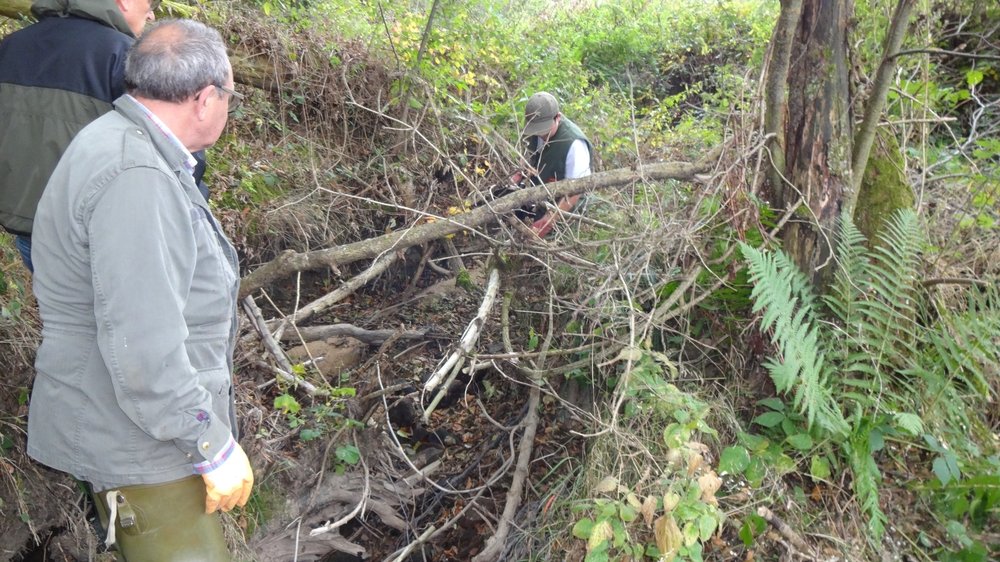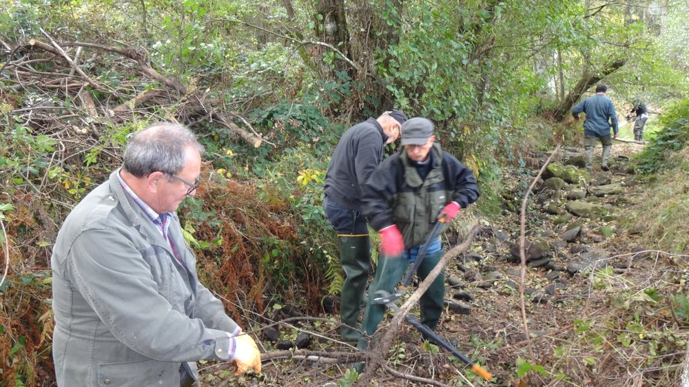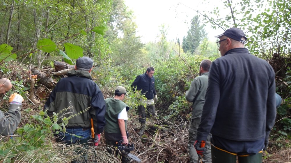 Les acteurs se sont répartis en deux équipes. Le travail qui consistait d’une part à aérer les berges de la rivière par un élagage léger, et d’autre part à enlever les embâcles qui perturbaient l’écoulement de l’eau sur un linéaire en amont et en aval du pont.