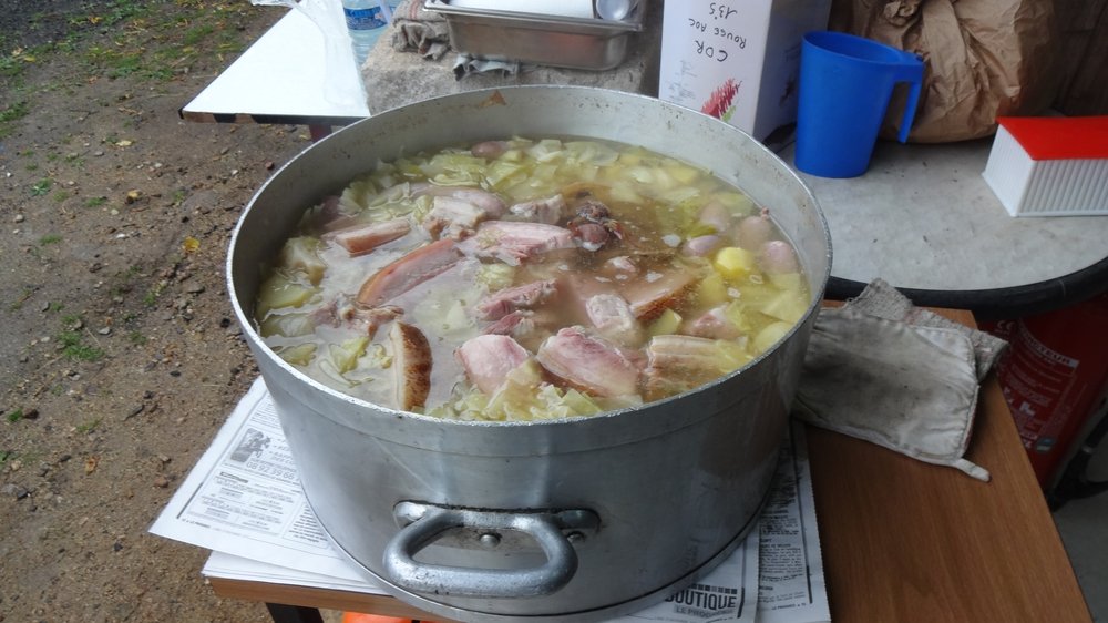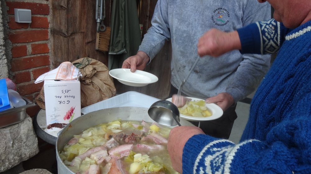Pour clore la matinée, le Gardon Forézien a offert, non pas un casse-croûte classique, mais une excellente soupe au chou que nous avons pu déguster, à l’abri, dans un hangar de la ferme d’un des responsables du Gardon Forézien.