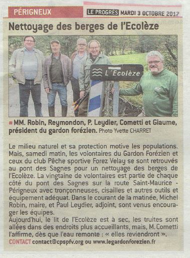 Samedi 30 septembre 2017, l’AAPPMA Le Gardon Forézien a organisé une opération d’entretien de rivière à laquelle le CPSFV s’est associé.