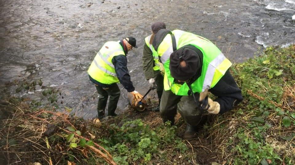 Le groupe CPSFV s’est scindé en trois équipes, une en aval du pont de la route de St-Just-St-Rambert, l’autre en amont du pont et la troisiéme équipe en amont de la deuxième avec le groupe de l’AAPPMA.