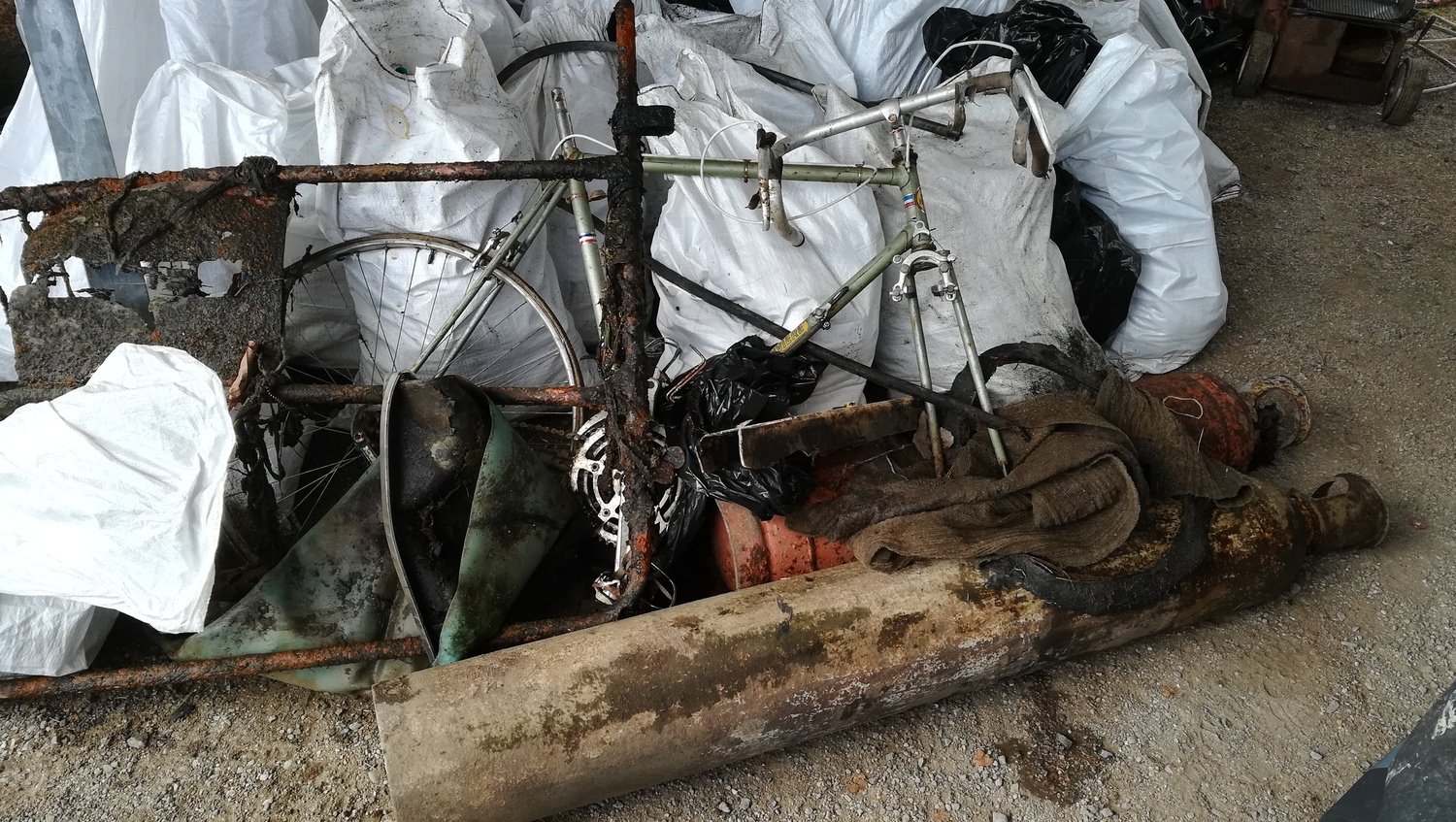 De très nombreux détritus ont été enlevés du cours d’eau sur ce secteur,dont de très nombreuses bâches en plastique utilisées en agriculture, de nombreux débris de toile utilisées par les maraîchers et même deux bouteilles de poste de soudure oxy-acéthylénique.