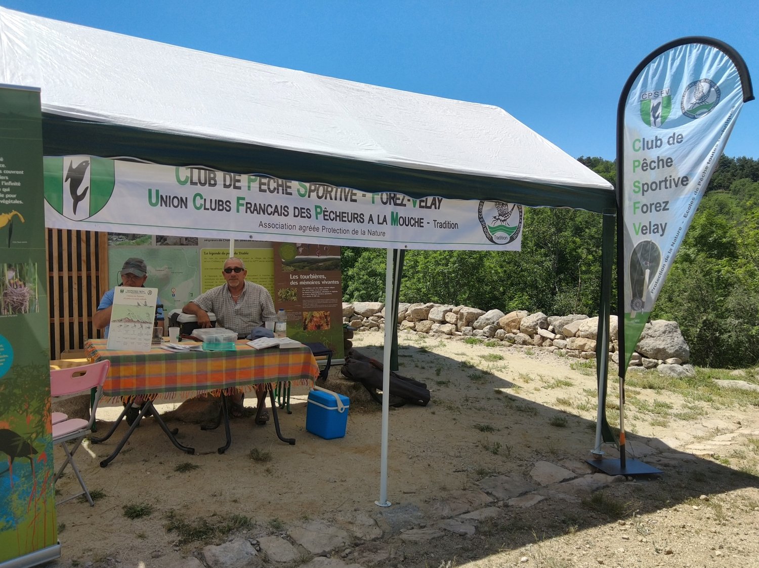 Comme convenu avec l’association Mouv’Ance, qui milite pour la défense de la biodiversité sur le bassin de l’Ance du Nord, le CPSFV a tenu un stand lors de la Fête de l’Ance organisée samedi 29 juin 2019 au hameau de Durand à Tiranges (43), sur le débit réservé en aval du barrage de Passouira. Très belle Fête de l’Ance qui a réuni plus de 300 personnes. Nous y avons rencontré, dans une atmosphère conviviale, les membres de l’association et les habitants du village,puisque cette fête était aussi celle de l’école mais également des pêcheurs locaux, pour certains moucheurs et anciens membres du club.