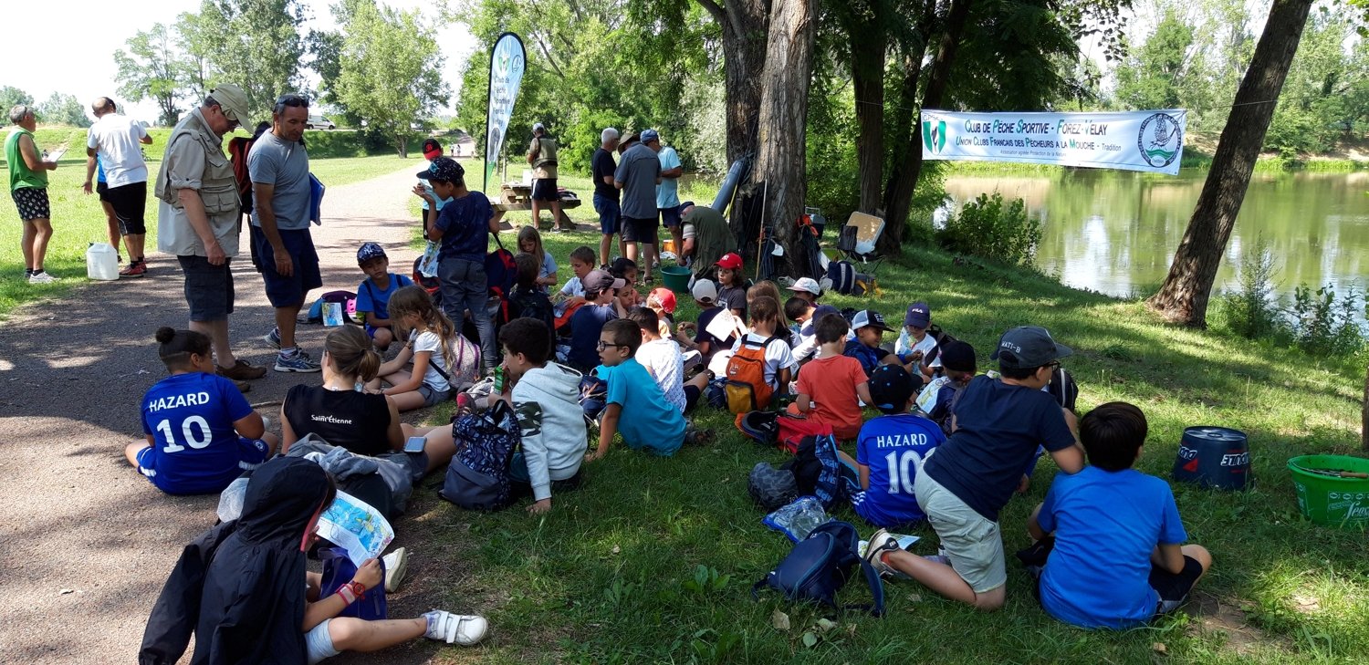 Comme chaque année en cette période, des enfants de l’Ecole Municipale des Sports de Saint-Etienne ont été accueillis ce mardi 09 juillet 2019 par le CPSFV, chargé de réaliser une animation pêche. Cette séance s’est déroulée sur la rive du grand étang des bords de Loire d’Andrézieux-Bouthéon pour 40 enfants de 6 à 12 ans répartis en deux groupes, un le matin et l’autre l’après-midi, encadrés par un support technique assuré par 11 bénévoles du CPSFV, qui a fourni également l’ensemble du matériel : cannes à pêche, lignes, amorces, appâts….