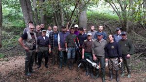 Vingt et un volontaires: 13 du Gardon Forézien et 8 du CPSFV (7 de la section de St-Etienne et 1 de la section du Forez) se sont retrouvés vers 7 heures du matin à St-Rambert avant de se rendre en convoi sur le lieu du chantier.