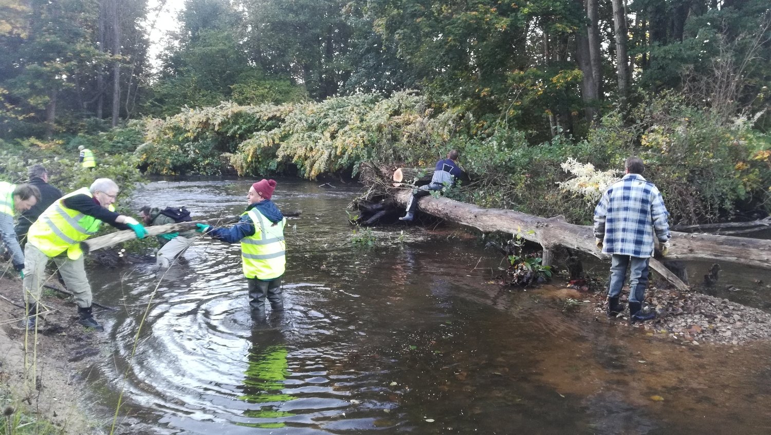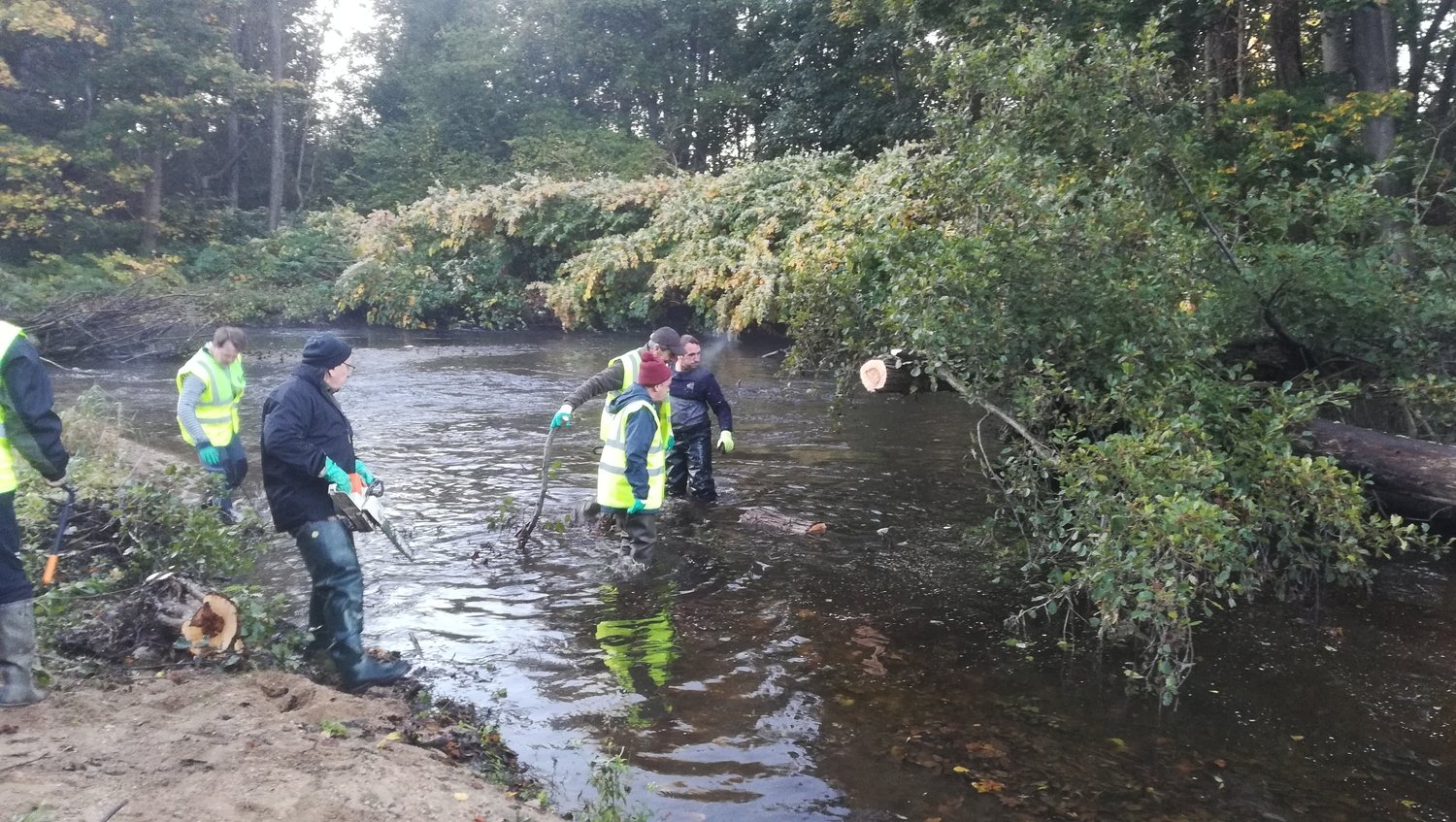 Cisailles et tronçonneuses se sont alors mises en action pour redonner à la rivière un aspect plus naturel, et permettre l’écoulement normal du flot.