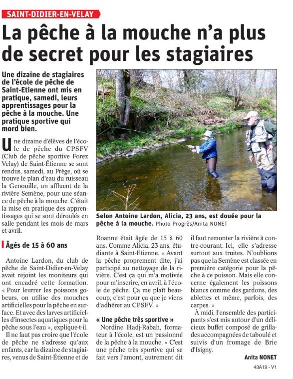 Le Club de Pêche Sportive Forez-Velay a réactivé, après 2 ans d’arrêt Covid, son École de Pêche à la Mouche.