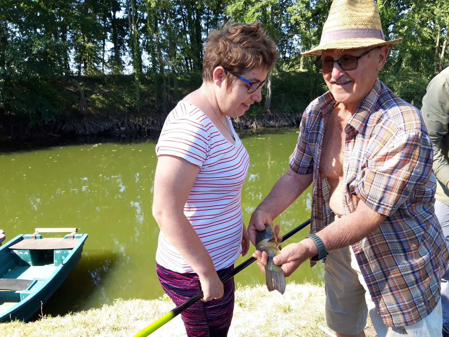 Malgré une forte baisse de niveau due à la sécheresse,pendant toute la matinée ces jeunes ont pu prendre de nombreux poissons (gardons, tanche et même une carpe) dans un étang privé situé à Veauchette et mis gracieusement à notre disposition pour cette journée.