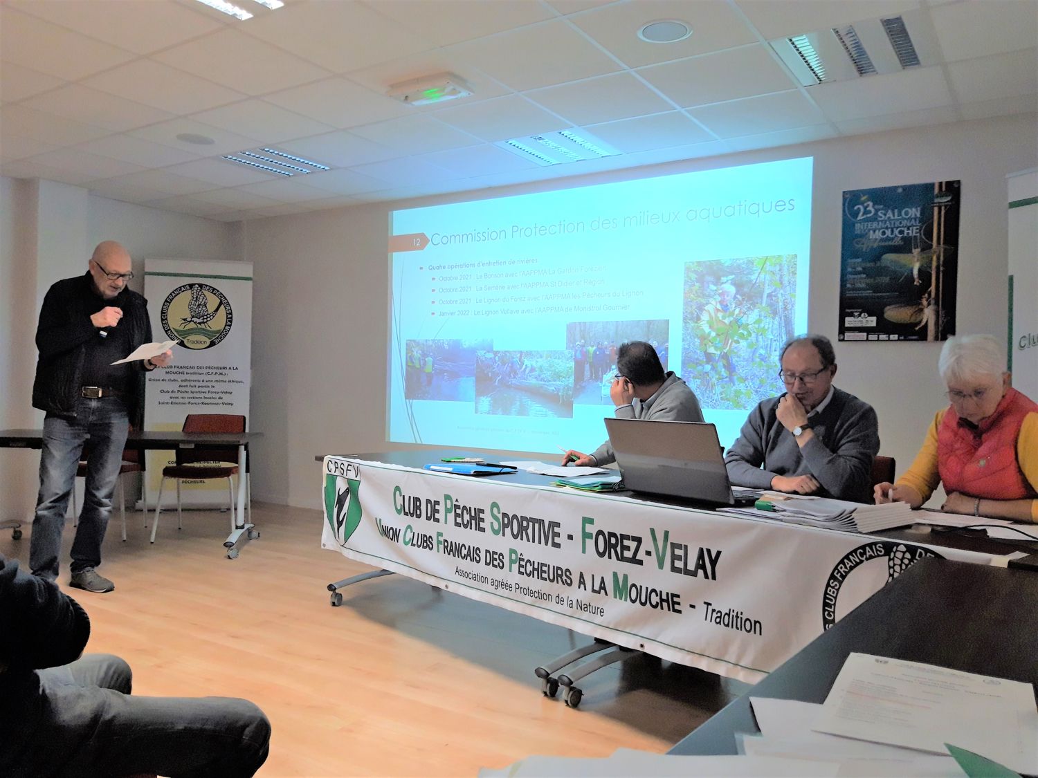 En premier lieu, une présentation rétrospective, par chaque responsable de commission, de toutes les activités qui ont eu lieu au cours de la saison 2021/2022 : sorties de pêche, animations promotionnelles, protection de l’environnement, rencontres halieutiques, Salon International de la Mouche Artificielle, etc.