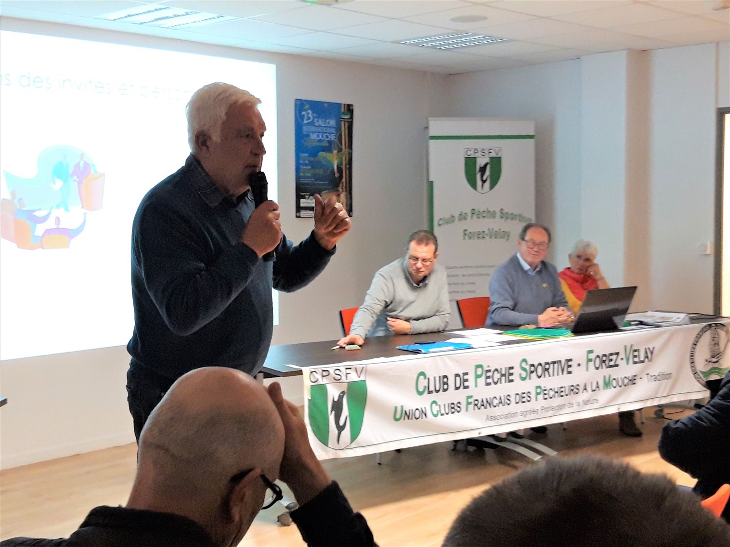 M Jean-Pierre Cizeron, président de l’AAPPMA de Monistrol Gournier, représentant également M Lionel Martin président de la Fédération de Pêche de la Hte Loire.