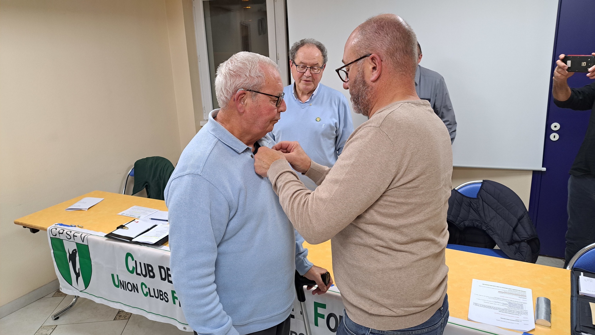 Pour clore l’assemblée générale, l’Éphémère d’argent a été remise à Gilbert Bonnardot, par Jean Christophe Perret, pour son engagement au service de la section du Roannais et plus largement du club.