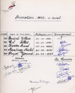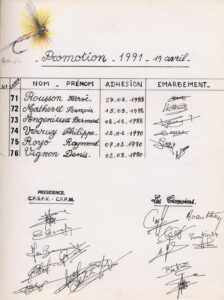 La première promotion du C.F.P.M. de la Loire a eu lieu le 23 Mars 1979 en présence des deux co-présidents fondateurs: Edmond ARDAILLE et Alain DE BOMPUIS.