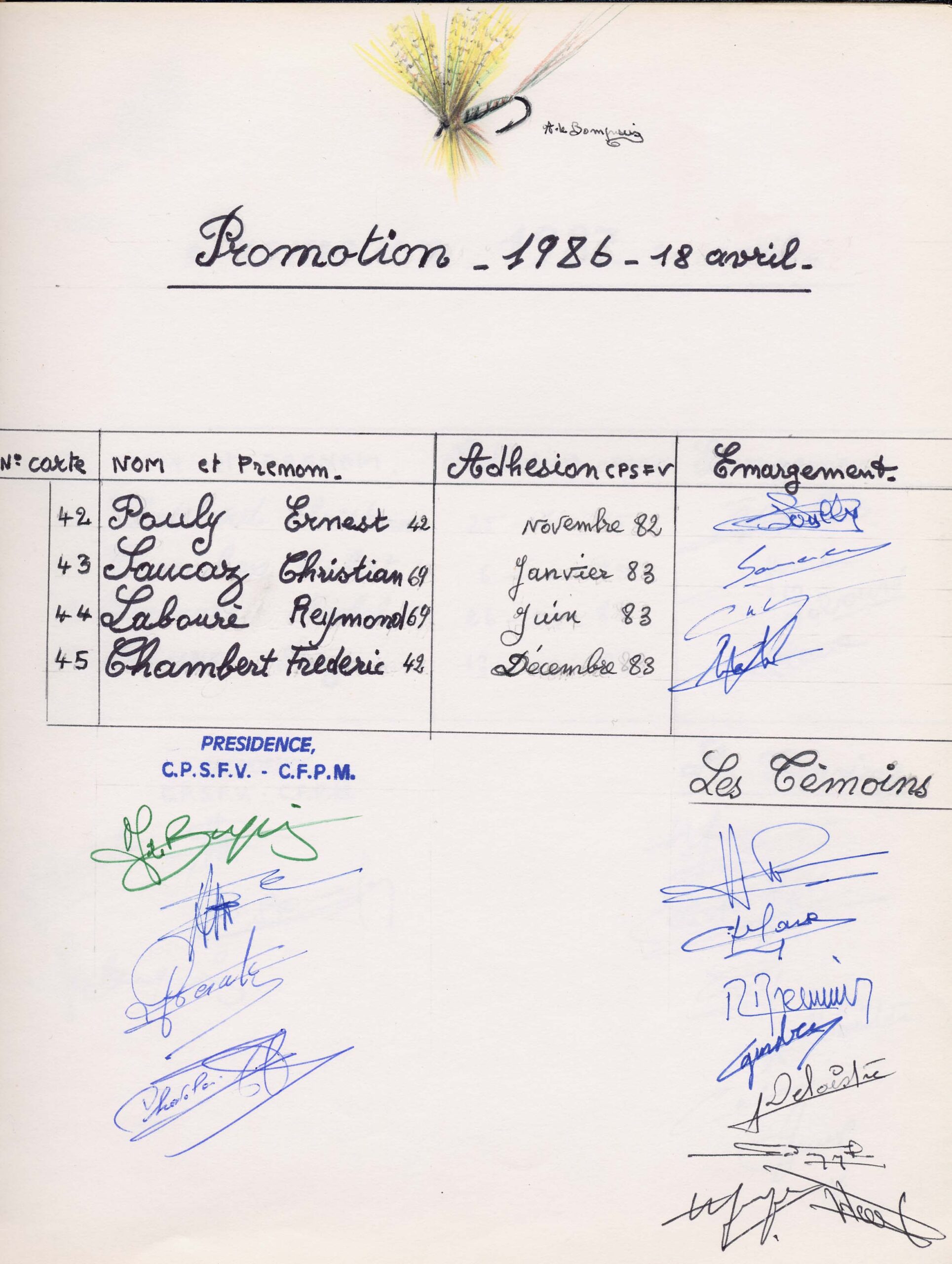 C’est à l’occasion d’un Trophée d’Argent de l’Ance, organisé chaque année par le Club de Pêche Sportive Forez-Velay, que M. BOURRU a fortement incité Messieurs Edmond ARDAILLE et Alain DE BOMPUIS alors co-présidents, à créer dans la Loire une section C.F.P.M. au sein du Club de Pêche Sportive Forez-Velay.