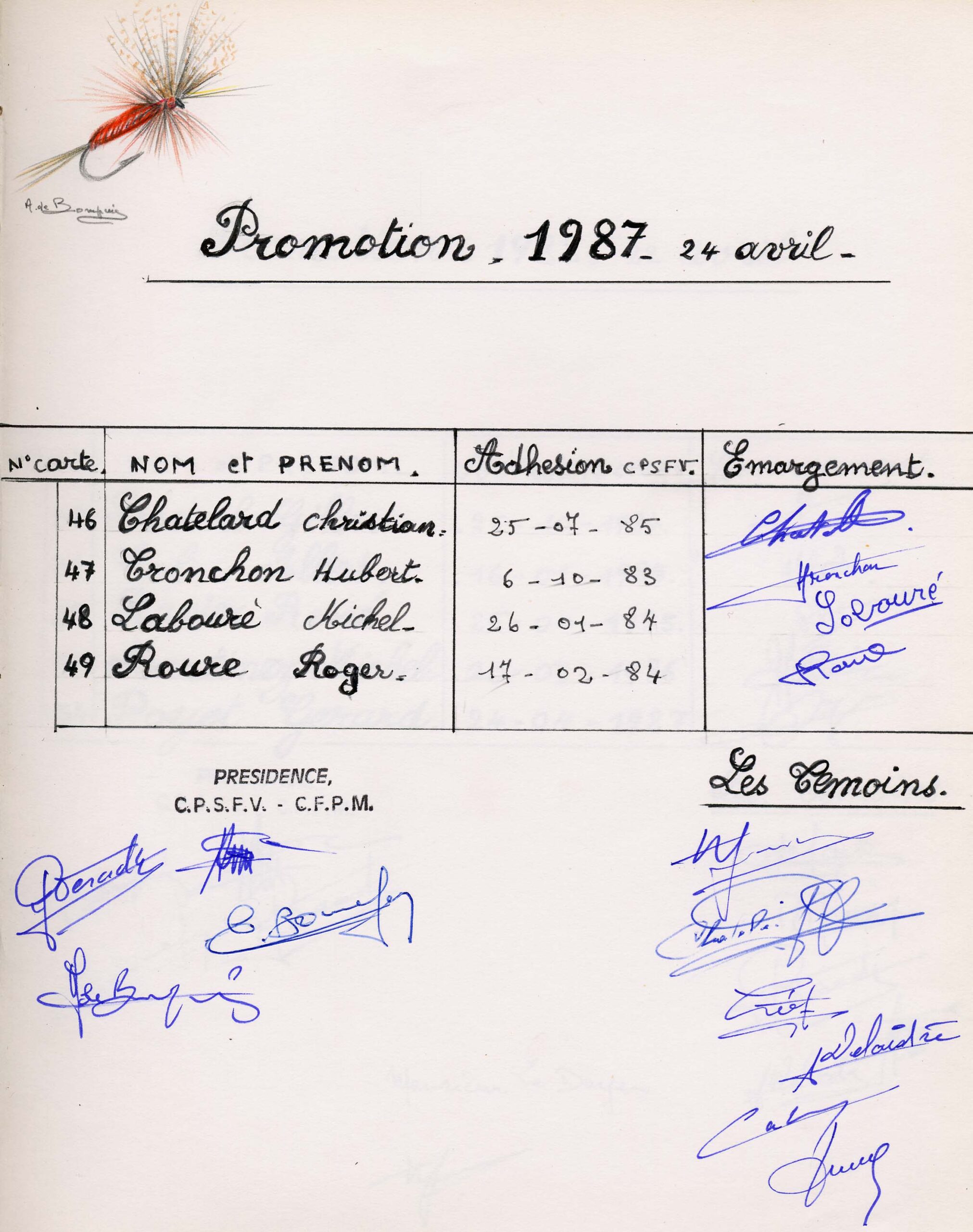 Après plusieurs années de participation aux activités du Club de Pêche Sportive Forez-Velay, tout pêcheur à la mouche qui s’investit et qui prend une part de responsabilité dans les activités du Club, peut, sur proposition du Conseil d’Administration être admis à :