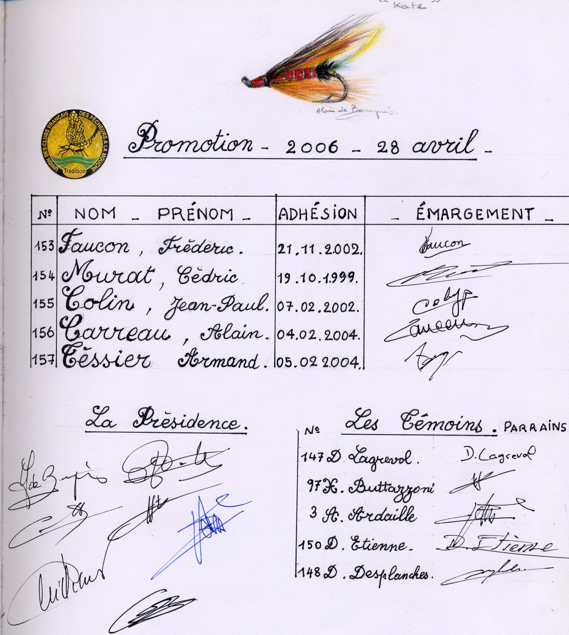 Il reçoit alors un certificat d’admission et un insigne personnel numéroté lors de la séance annuelle de prestation de serment où, en présence des membres du CFPM et de son parrain de Club, il s’engage à respecter le code d’honneur du C.F.P.M.